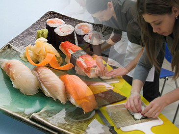 Мы рекомендуем вам приходить на курс "Как приготовить суши" с пустым желудком - вы не откажетесь попробовать произведения собственного кулинарного творчества и сравнить их с суши, приготовленными поваром и вашими коллегами.